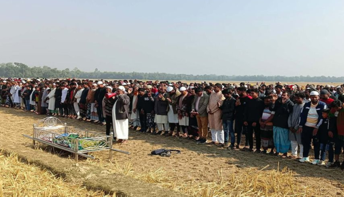 আজ শুক্রবার (১২ ডিসেম্বর) সকালে রাজশাহীর তানোরের কোয়েলহাট গ্রামে হয় সাজিদের জানাজা। এরপর বাড়ির পাশে কবরস্থানে সমাহিত করা হয় সাজিদকে।
